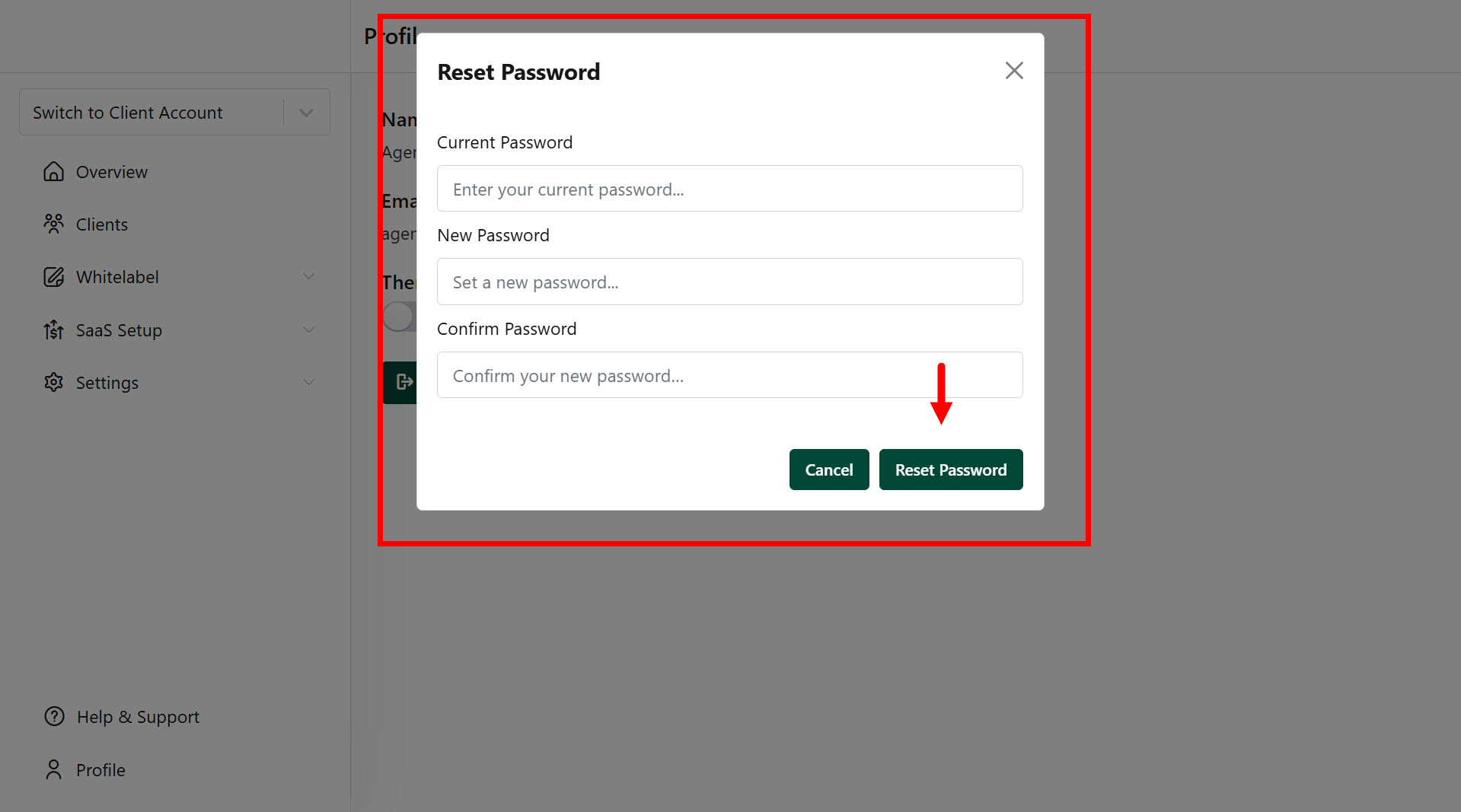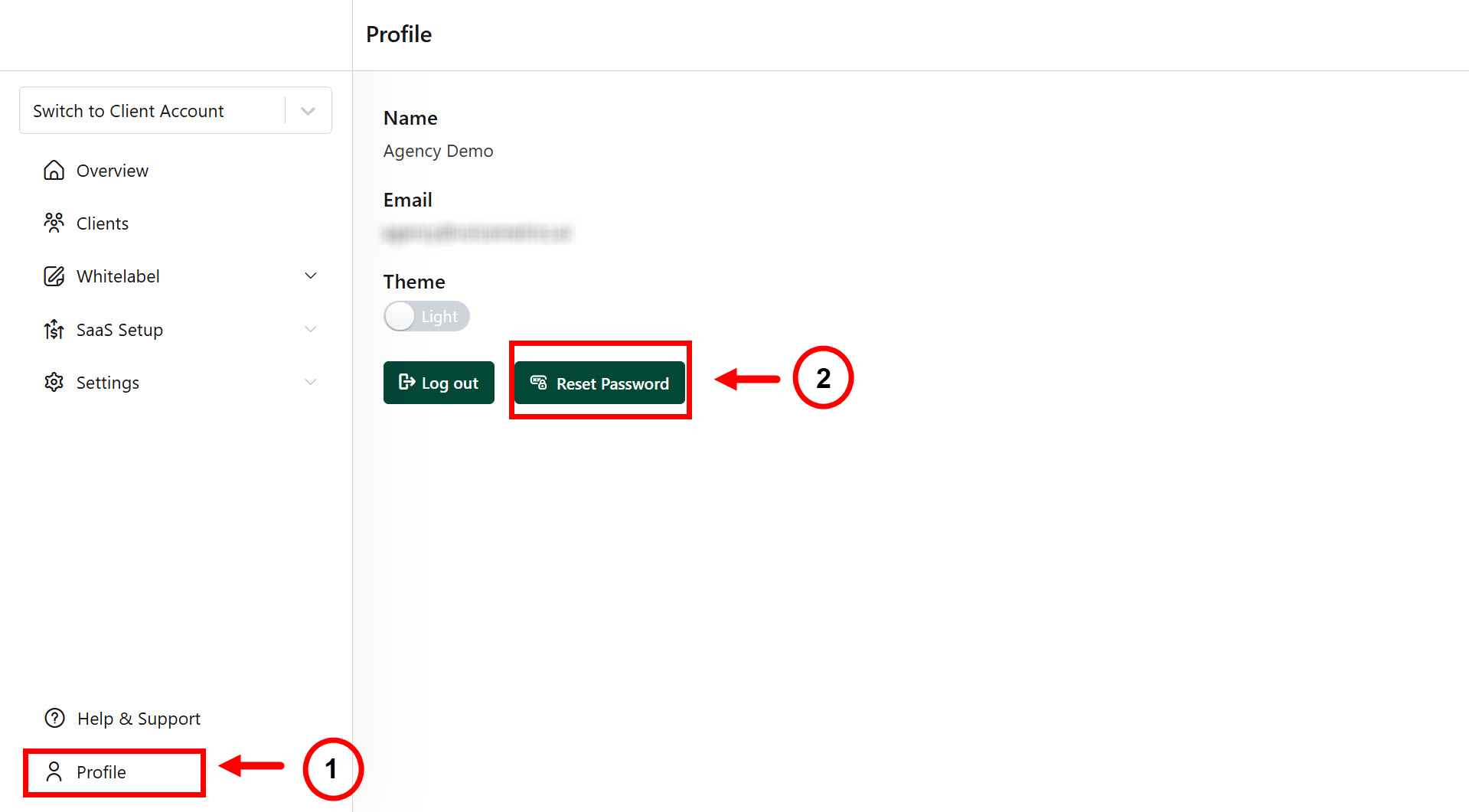 Tap on Profile (bottom left) menu and click on the Reset Password button.